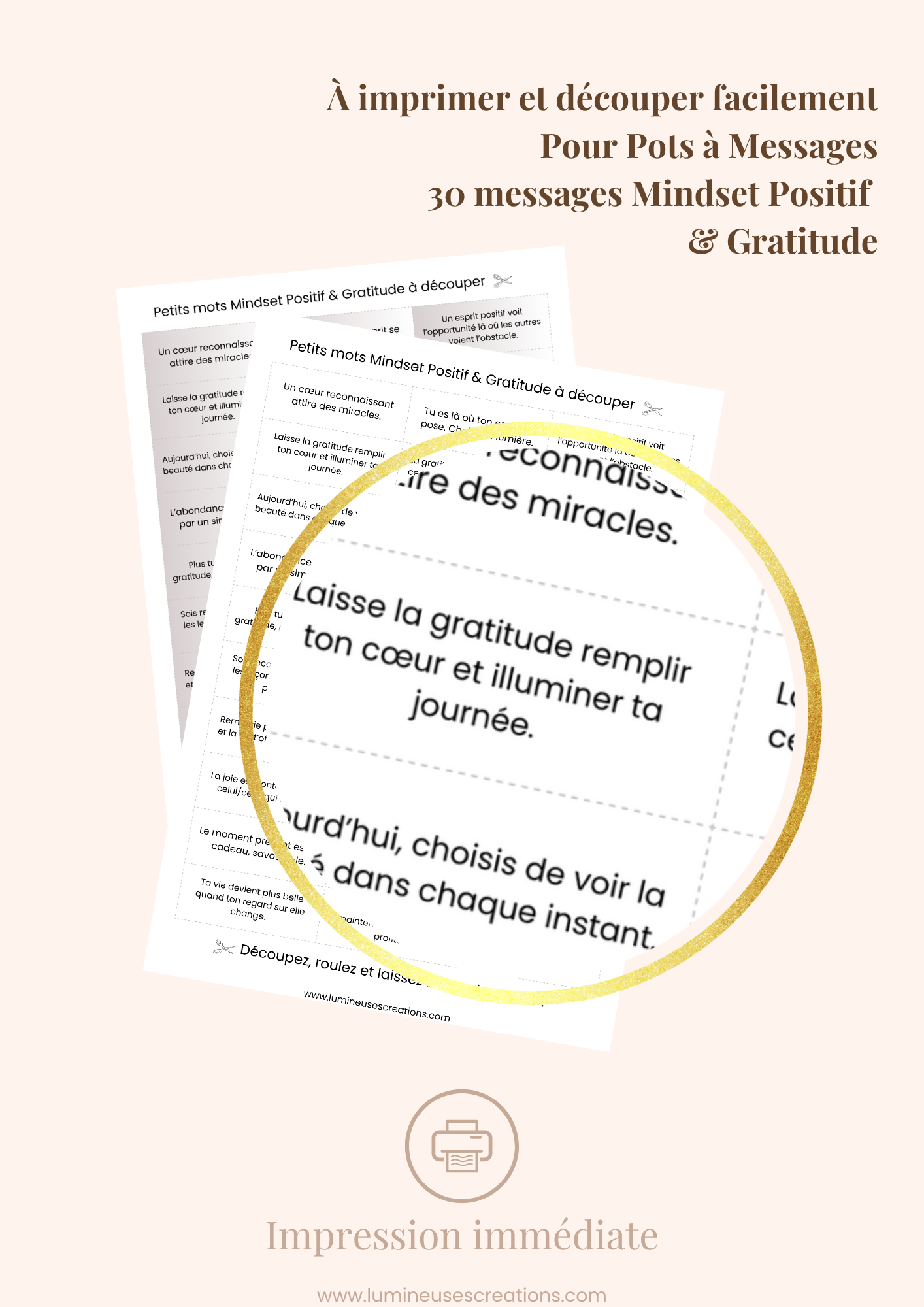 Messages positifs - 30 phrases MESSAGES MINDSET POSITIF & GRATITUDE à imprimer